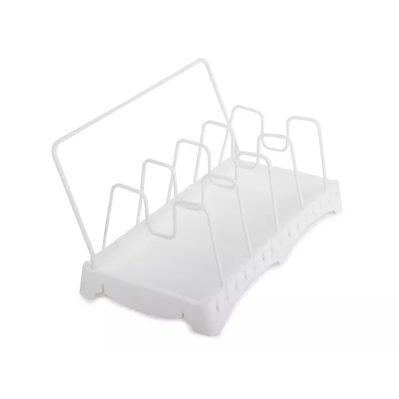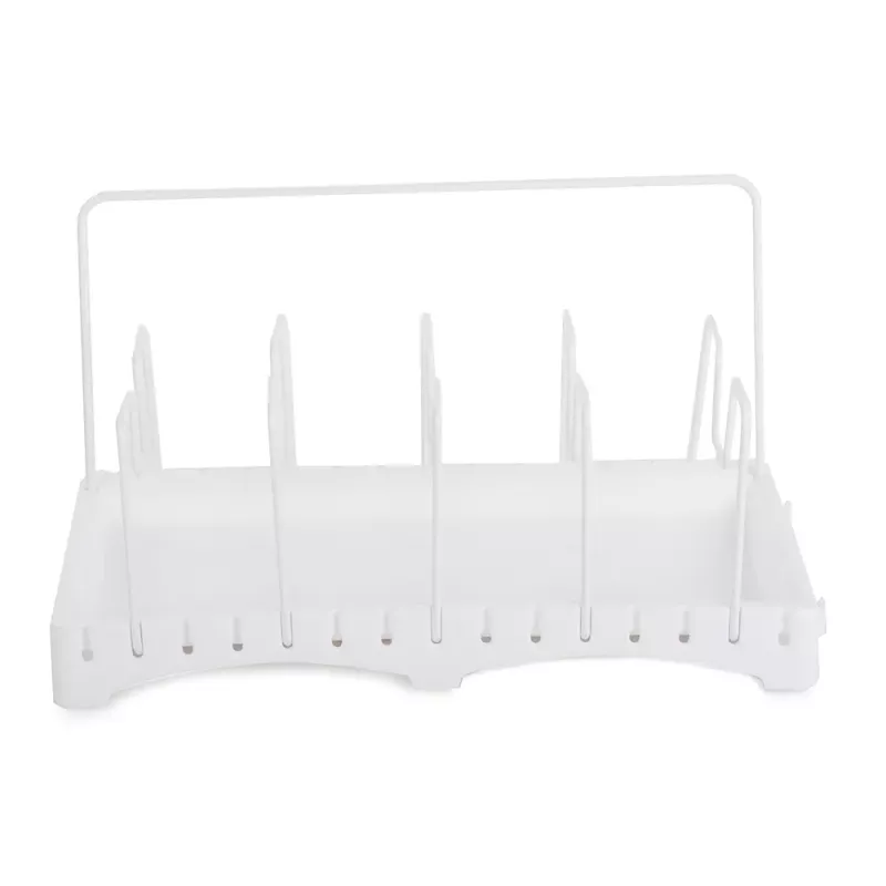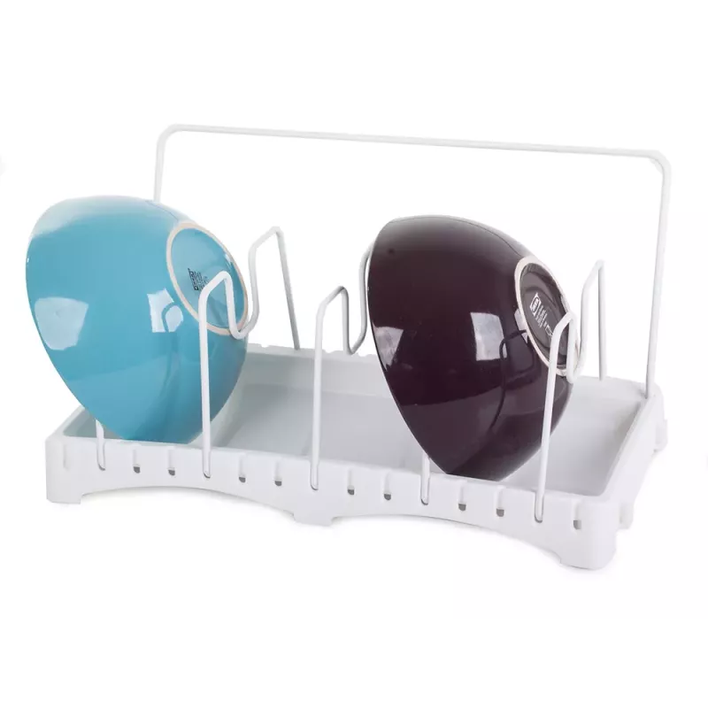 Suszarka pozwoli uporządkować różne akcesoria kuchenne takie jak: pokrywki do garnków, patelnie, garnki, deski do krojenia, naczynia, brytfanny do zapiekania, itp. Stojak wyposażony jest w ociekacz, dzięki któremu akcesoria kuchenne po umyciu mogą swobodnie obeschnąć przed schowaniem do szafki.