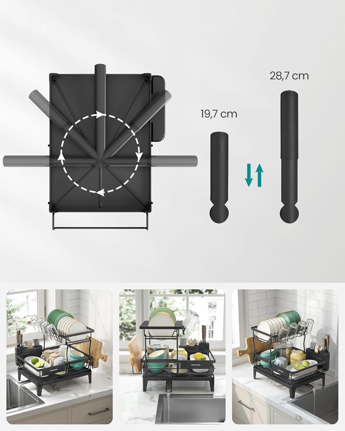 Poszukujesz suszarki, która nie tylko zmieści dużo naczyń, ale też będzie stabilna, elegancka i wygodna w codziennym użyciu? Ten dwupoziomowy model SONGMICS to odpowiedź na praktyczne potrzeby nowoczesnych kuchni.