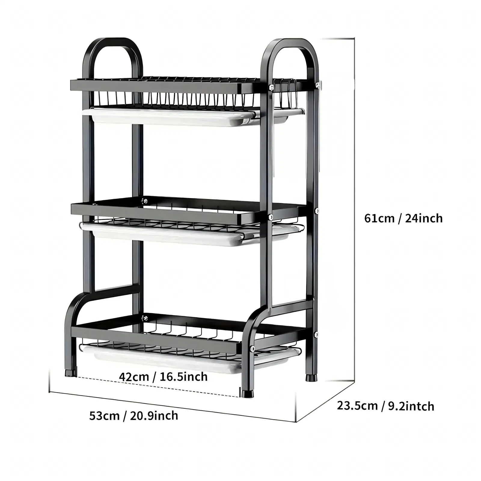 Suszarka do Naczyń Ociekacz Trzypoziomowa Czarna Duża XXL