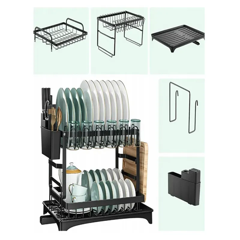 Suszarka do naczyń talerzy sztućców kubków dwupoziomowa ociekacz z tacką