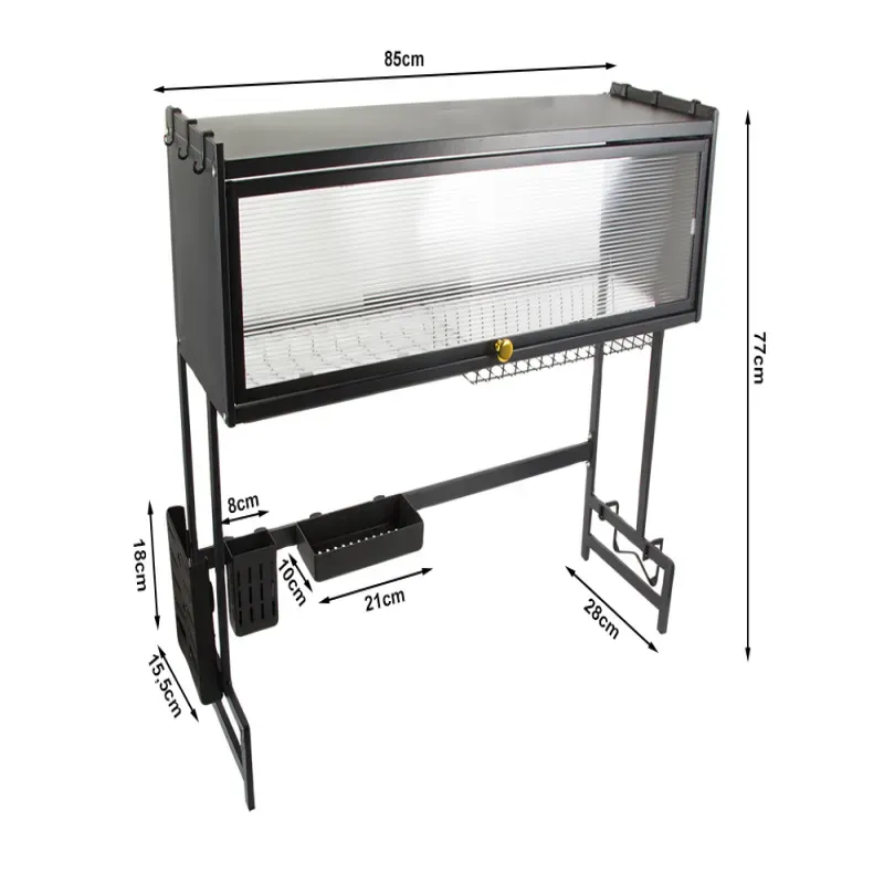 Organizer nad zlewozmywak pozwoli Ci zachować porządek i optymalnie wykorzystać przestrzeń roboczą. Otwierane przezroczyste drzwiczki nie tylko chronią naczynia przed kurzem, ale też ułatwiają dostęp do środka.