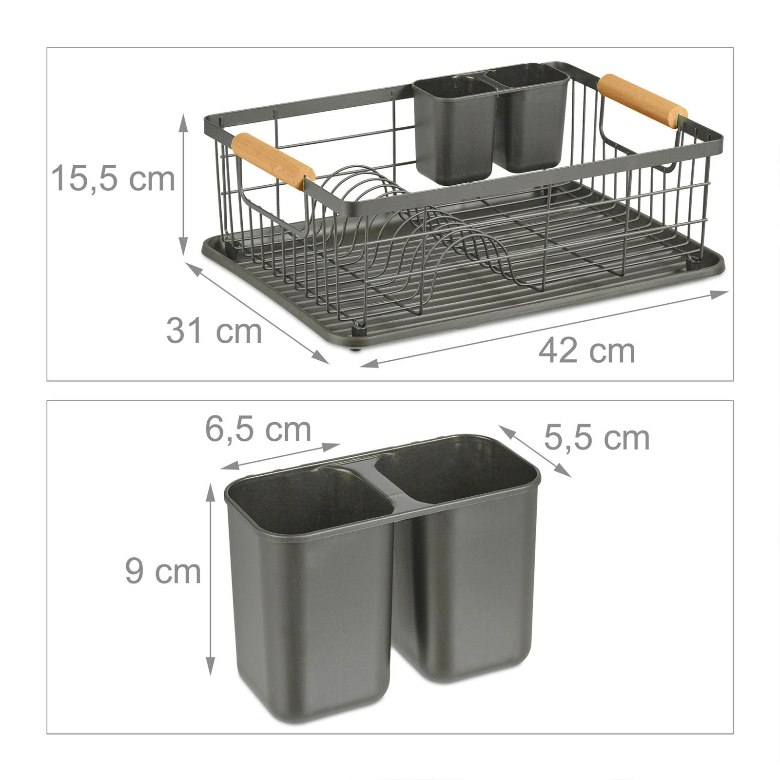 Stojak na naczynia z tacką ociekową i koszem na sztućce