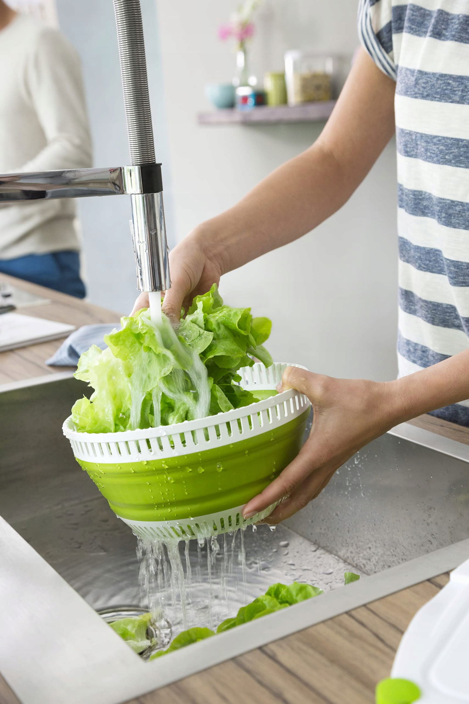 ➡ Skuteczne odprowadzanie wody – sałata gotowa do podania w sekundach.