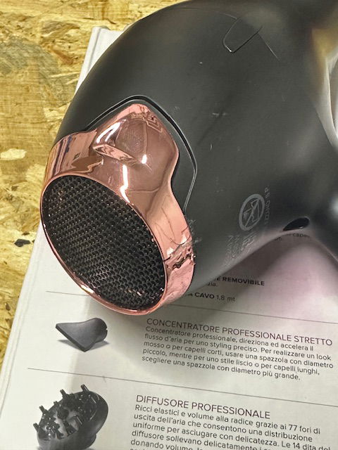 Profesjonalny dyfuzor: definiuje loki i nadaje objętość prostym, pozbawionym koloru włosom, elastyczne loki i objętość u nasady dzięki 77 otworom wylotowym powietrza, które umożliwiają równomierne rozprowadzenie w celu delikatnego suszenia