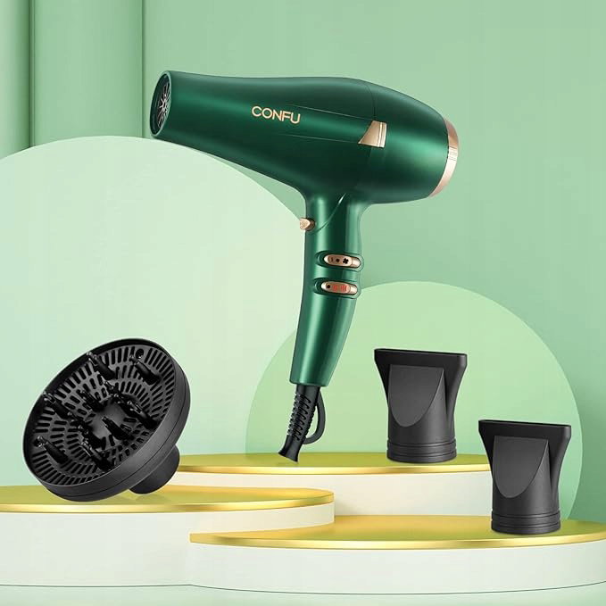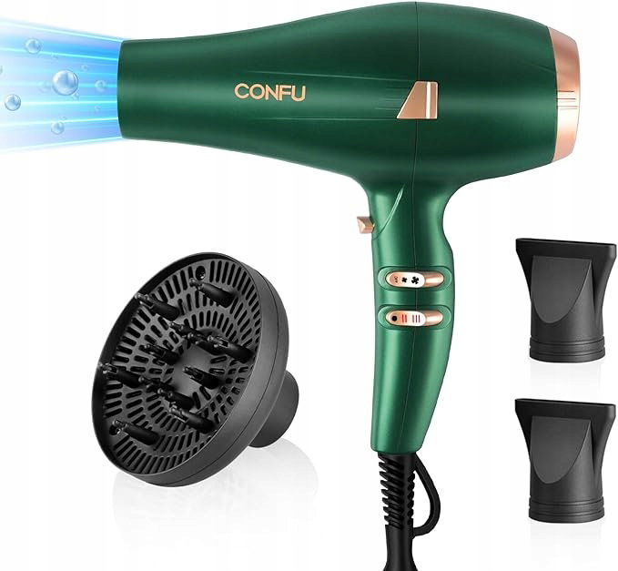 CONFU Suszarka do włosów, profesjonalna suszarka jonowa, 2400 W, z dyfuzorem, dysza do stylizacji, 2 prędkości i 3 tryby ogrzewania AC, szybkie suszenie, wydajna suszarka do włosów do salonu i rodziny