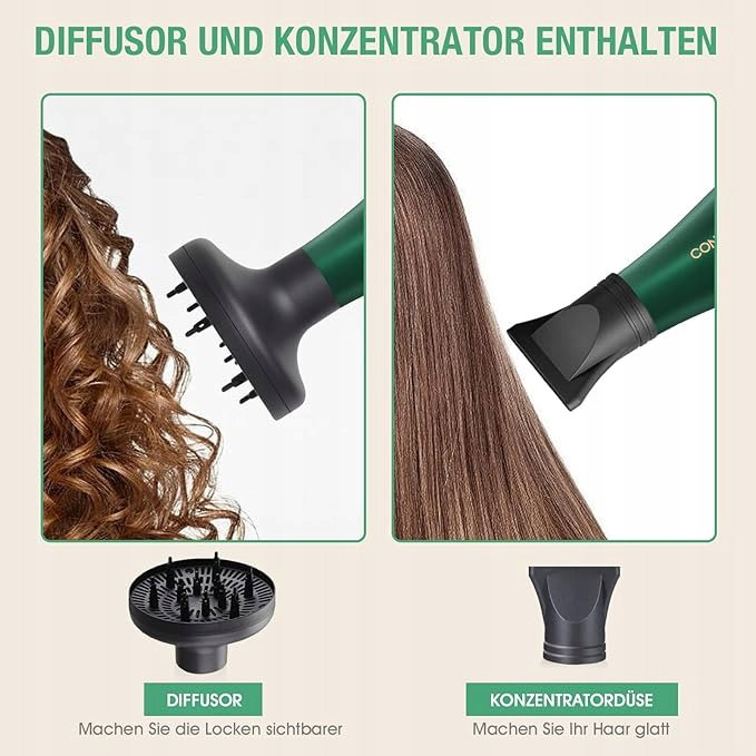 【Zaawansowana technologia jonowa】: Zaawansowana technologia jonowa oswaja fale, zapobiega ładowaniu statycznemu i zwiększa połysk. Doskonale sprawdza się niezależnie od tego, czy masz kręcone czy proste włosy. Z 2 prędkościami i 3 poziomami ogrzewania, 2 dyszami, 1 dyfuzorem, aby pomóc Ci w stworzeniu ulubionego wyglądu.