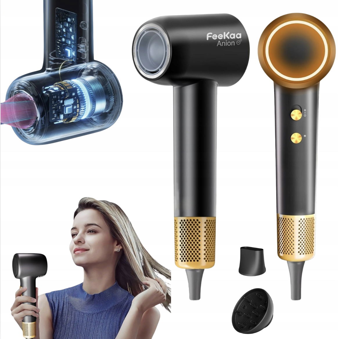 Suszarka do włosów feekaa posiada rewolucyjną technologię stylizacji włosów, nasz silnik DC o wysokiej prędkości ma 3-krotne ciśnienie powietrza od normalnych suszarek do włosów.