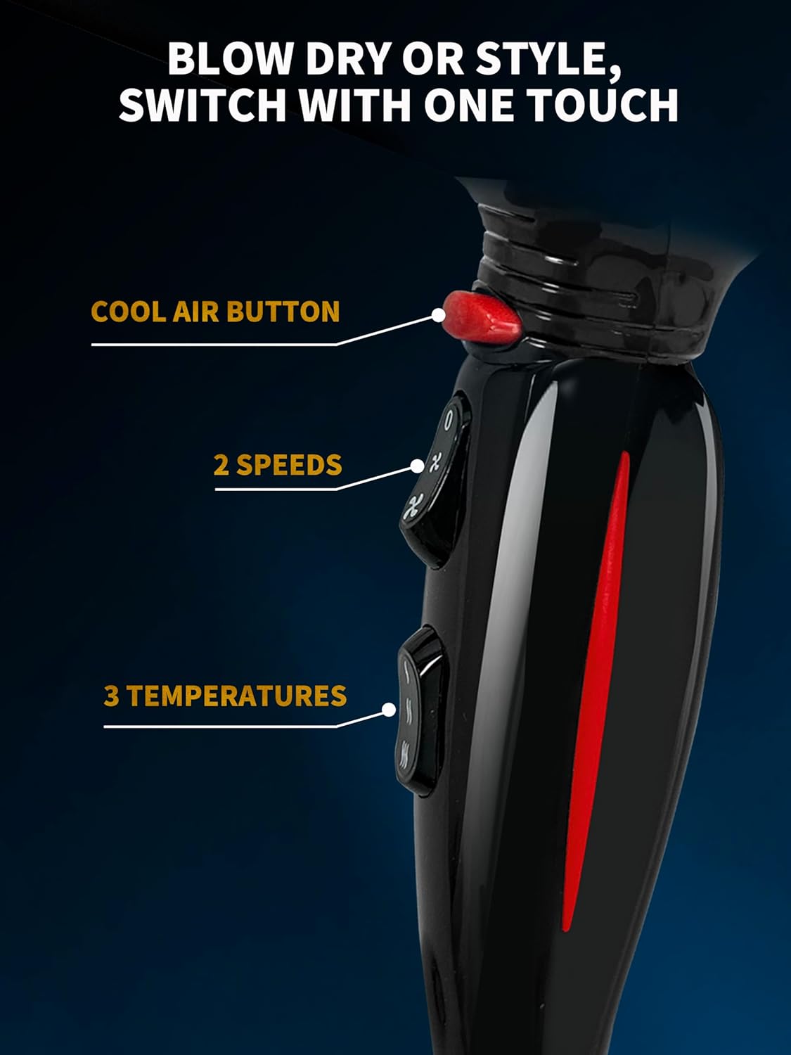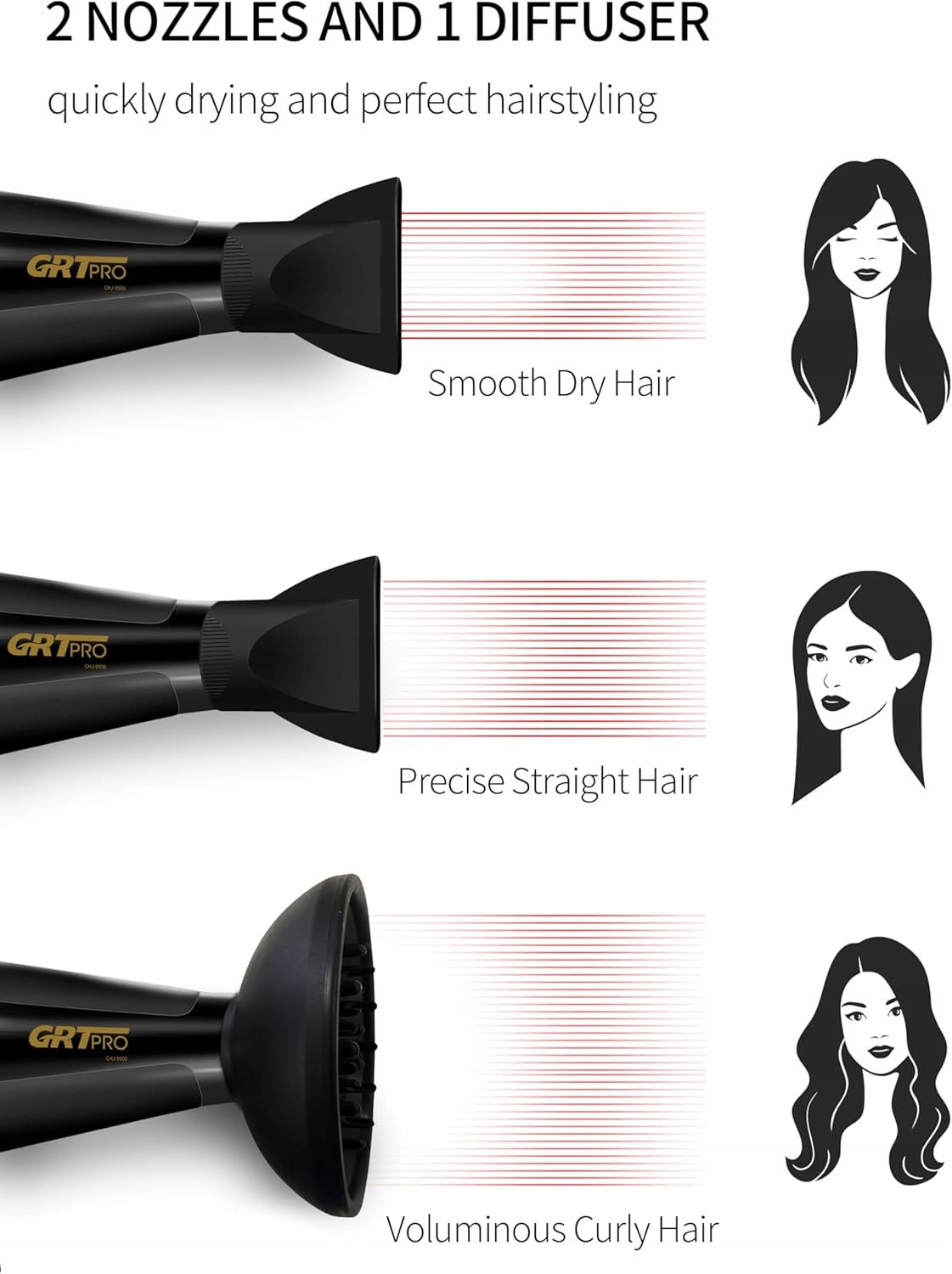 PROFESJONALNA STYLIZACJA W SALONIE - ta suszarka do włosów ma 3 ustawienia temperatury i 2 ustawienia prędkości, a także chłodny nawiew do włączenia jednym przyciskiem. Gorące powietrze suszy, a chłodne utrwala, dzięki czemu można dostosować stylizację do własnych potrzeb. 2 kolektory powietrza o różnych rozmiarach zapewniają skoncentrowany przepływ powietrza i pozwalają nadać fryzurze dowolny kształt.