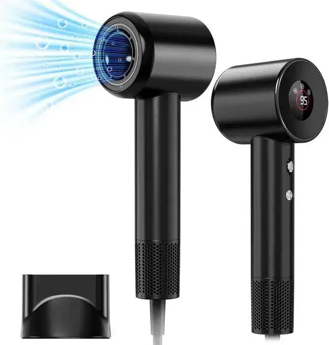 Suszarka do włosów o dużej prędkości: wydajny bezszczotkowy silnik o dużej prędkości 140 000 obr./min szybciej wysusza włosy. co jest 3 razy szybsze niż w przypadku tradycyjnych suszarek do włosów i skraca czas schnięcia o połowę, wydajne suszenie włosów z szybkim przepływem powietrza.
