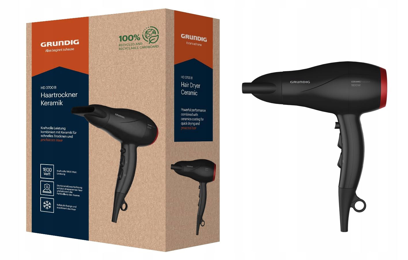 Suszarka GRUNDIG HD 3700 B 1800W 3 poziomy temperatury kabel 1.8m