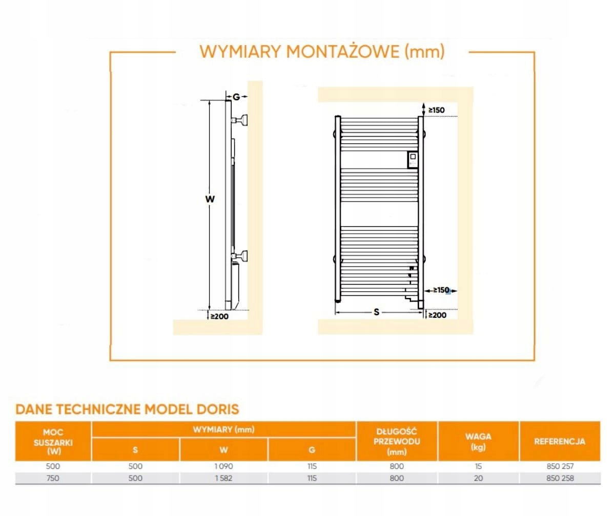 Suszarka Łazienkowa Grzejnik Doris-4 Model Classic 750W, Biały (2684)
