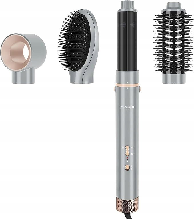 MaxAIR Styler to prawdziwy mistrz wszechstronności! Dzięki 5 różnym nasadkom, możesz łatwo przekształcić go w suszarkę do włosów, lokówkę, szczotkę do prostowania lub wygładzania. Pozwala na tworzenie różnorodnych fryzur w szybki i prosty sposób, bez potrzeby korzystania z wielu urządzeń.