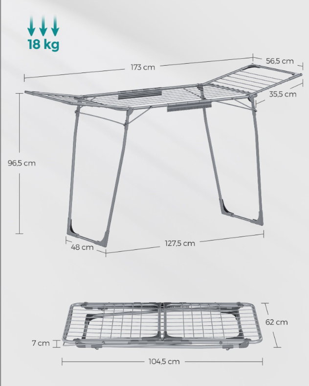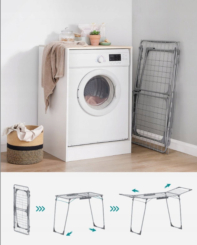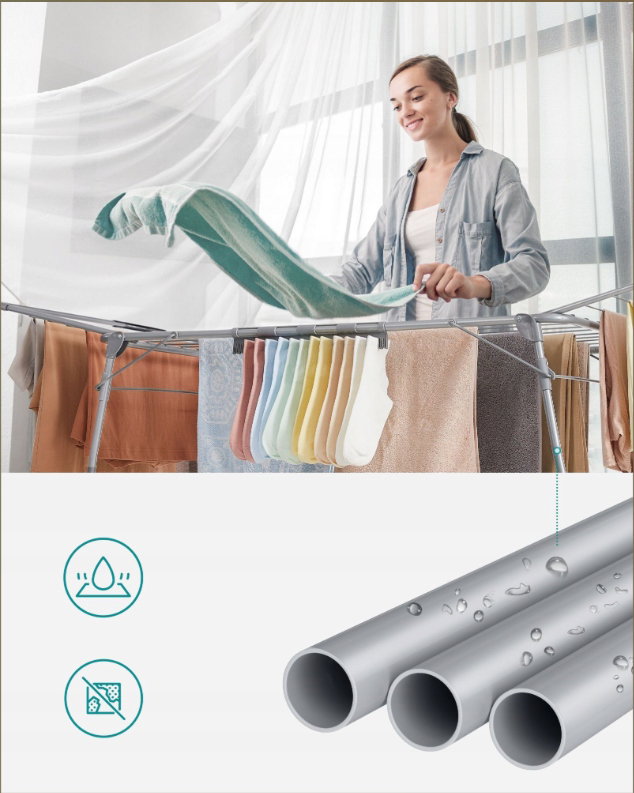 - ✴️Składana i odporna na rdzę - jeśli suszarka nie jest potrzebna, można ją łatwo złożyć i schować, oszczędzając miejsce. Drążki na pranie mają powłokę odporną na rdzę, dzięki czemu można bez obaw powiesić mokre ubrania