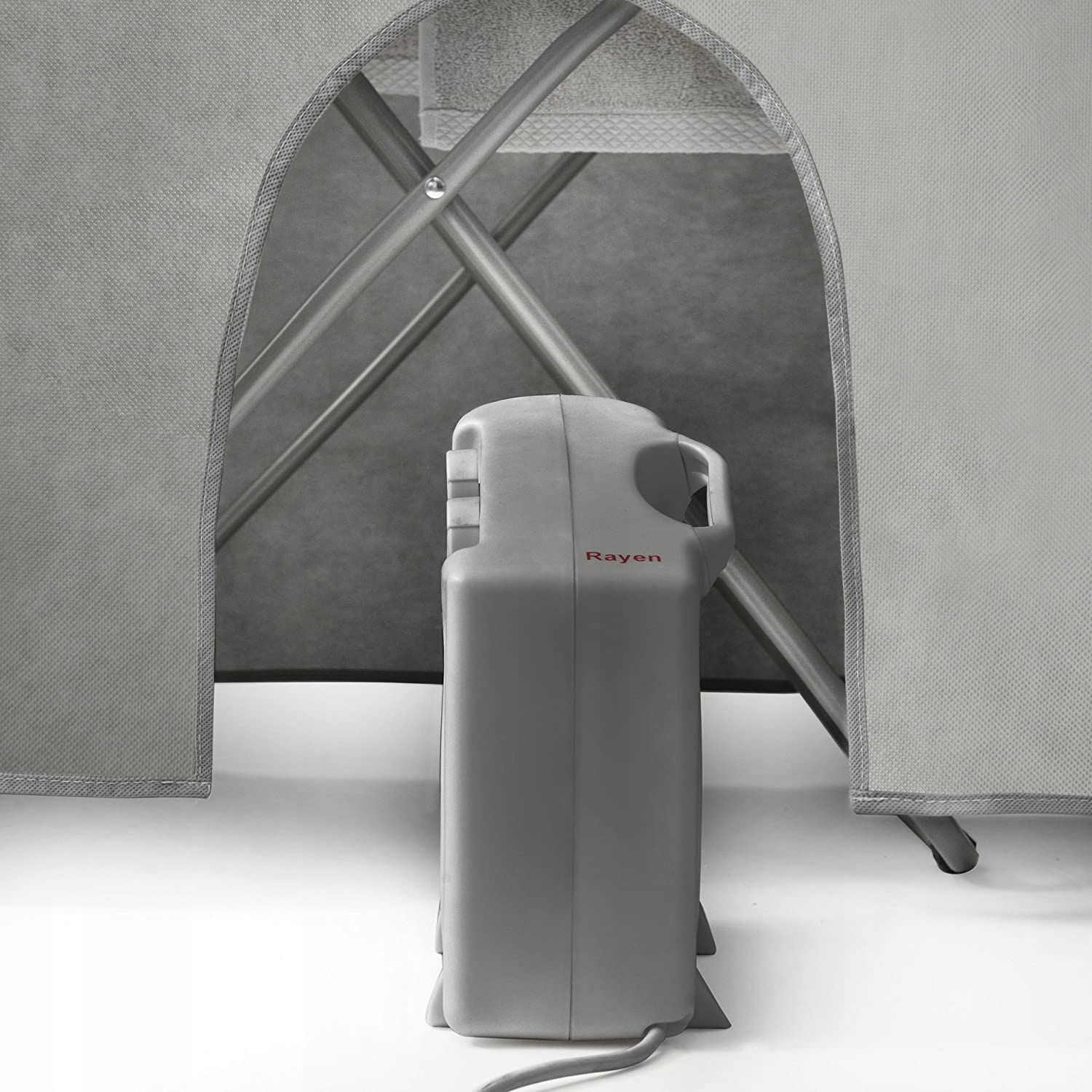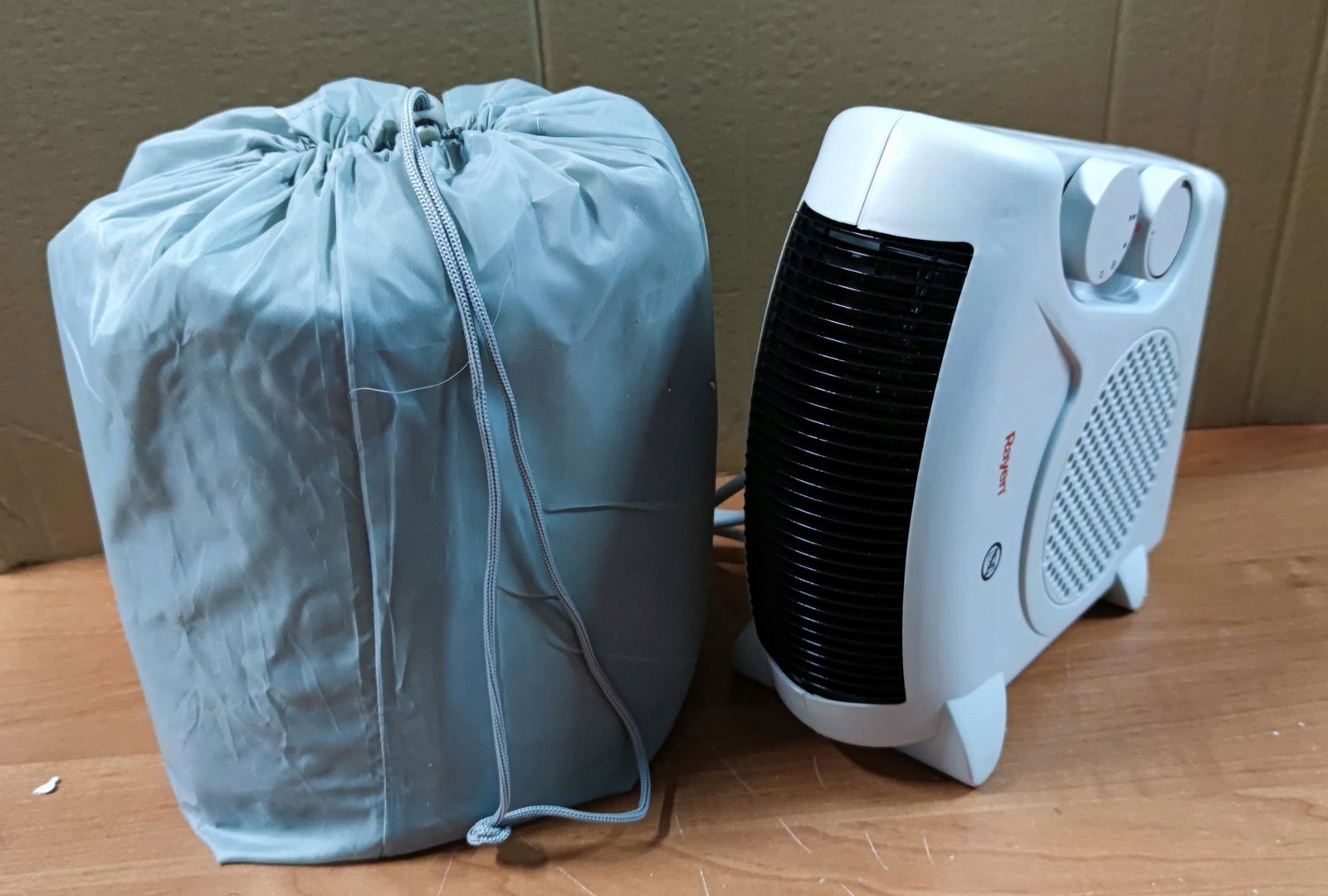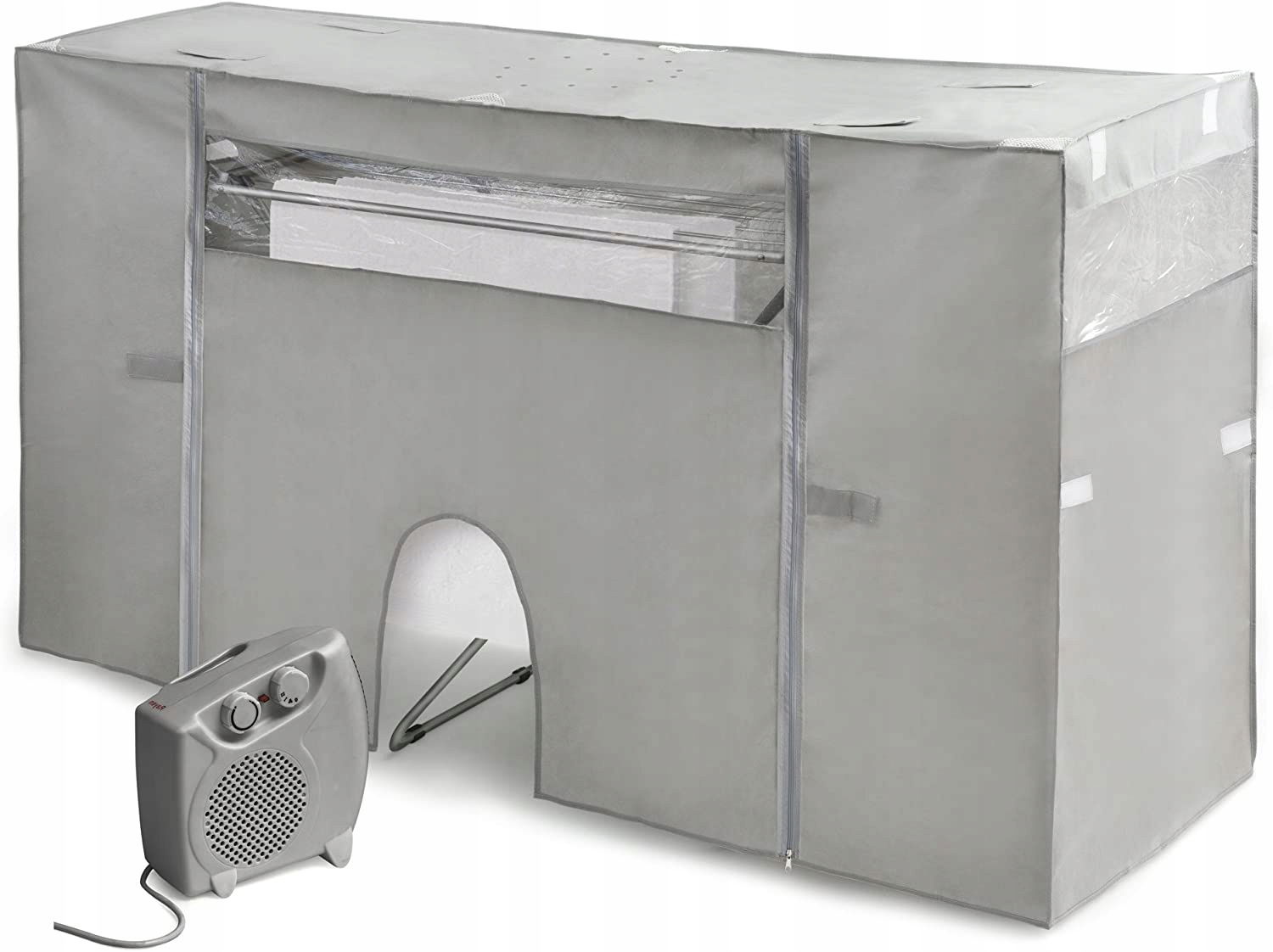 W skład zestaw wchodzi narzuta materiałowa na suszarkę oraz podgrzewasz/wentylator elektryczny.