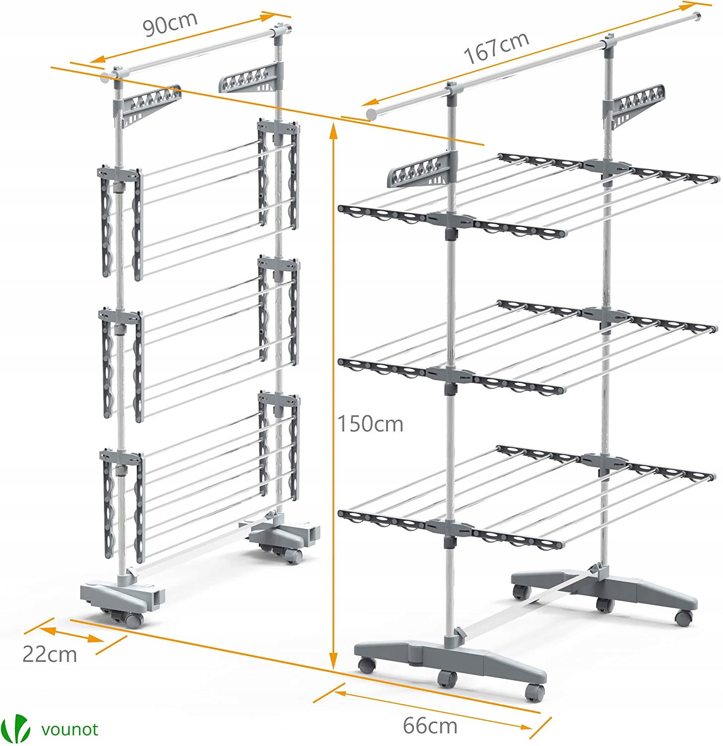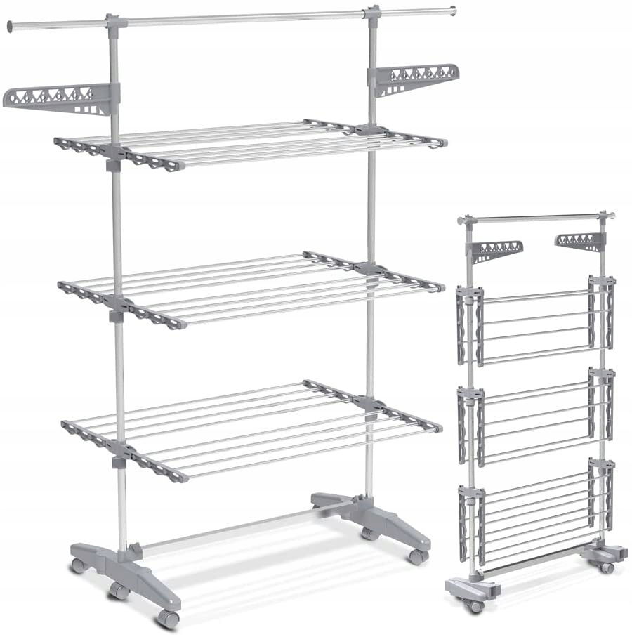 VOUNOT Duża 3-poziomowa suszarka na ubrania składa