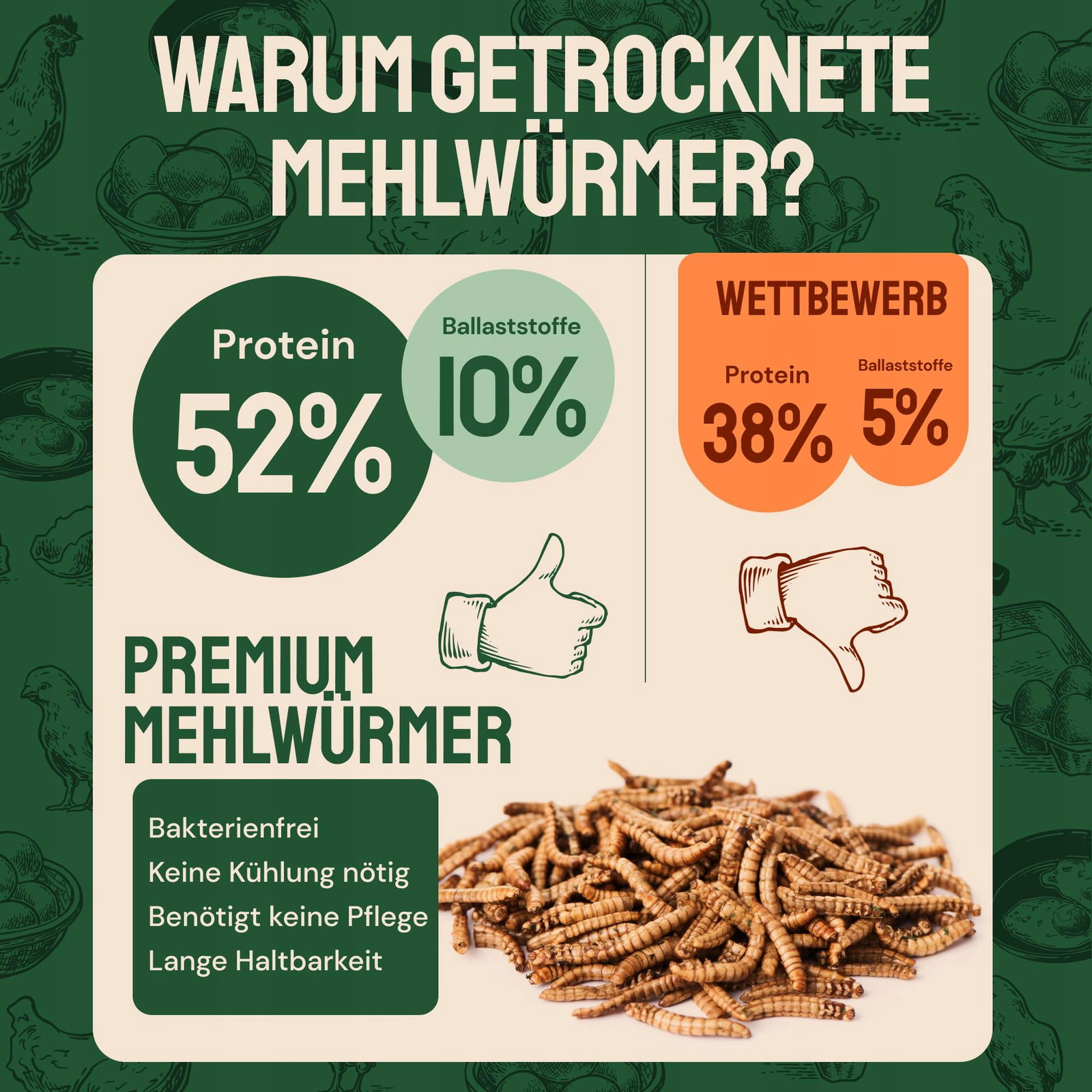 Suszone mączniki marki Hatortempt to wysokiej jakości, naturalna karma bogata w białko i tłuszcze, idealna do dokarmiania ptaków oraz jeży. Produkt sprawdzi się przez cały rok, a szczególnie w okresach zwiększonego zapotrzebowania energetycznego – jesienią, zimą oraz wiosną.