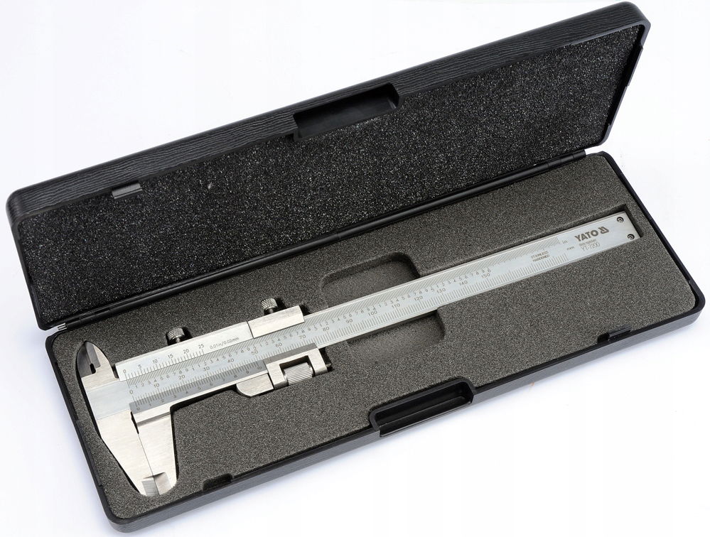 Wykonana ze stali nierdzewnej klasyczna suwmiarka pozwala na przeprowadzanie pomiarów w zakresie od 0 - 150 mm z dokładnością do 0,02 mm. Wyraźna i czytelna podziałka wpływa na dokładność i łatwość odczytu wskazanych wartości. Umożliwia wykonanie pomiarów zewnętrznych, wewnętrznych, pomiaru wysokości i głębokości.