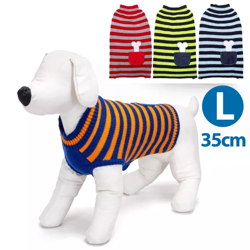 Elegancji, klasyczny cieplutki sweterek z pasiastym wzorem, dla psich zmarzluchów. Idealne ubranko na chłodniejsze dni, jest milutkie, rozciągliwe, dzięki czemu nie będzie problemu, aby założyć go na pieska.