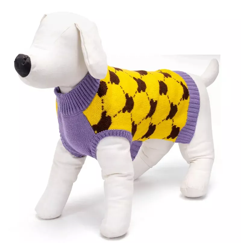 Elegancji, klasyczny cieplutki sweterek z kontrastowym żakardowym wzorem, dla psich zmarzluchów. Idealne ubranko na chłodniejsze dni, jest milutkie, rozciągliwe, dzięki czemu nie będzie problemu, aby założyć go na pieska.