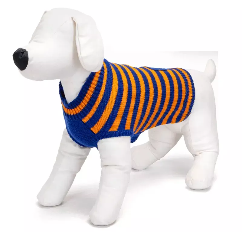 Elegancji, klasyczny cieplutki sweterek z pasiastym wzorem, dla psich zmarzluchów. Idealne ubranko na chłodniejsze dni, jest milutkie, rozciągliwe, dzięki czemu nie będzie problemu, aby założyć go na pieska.