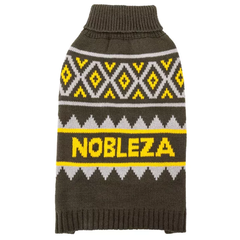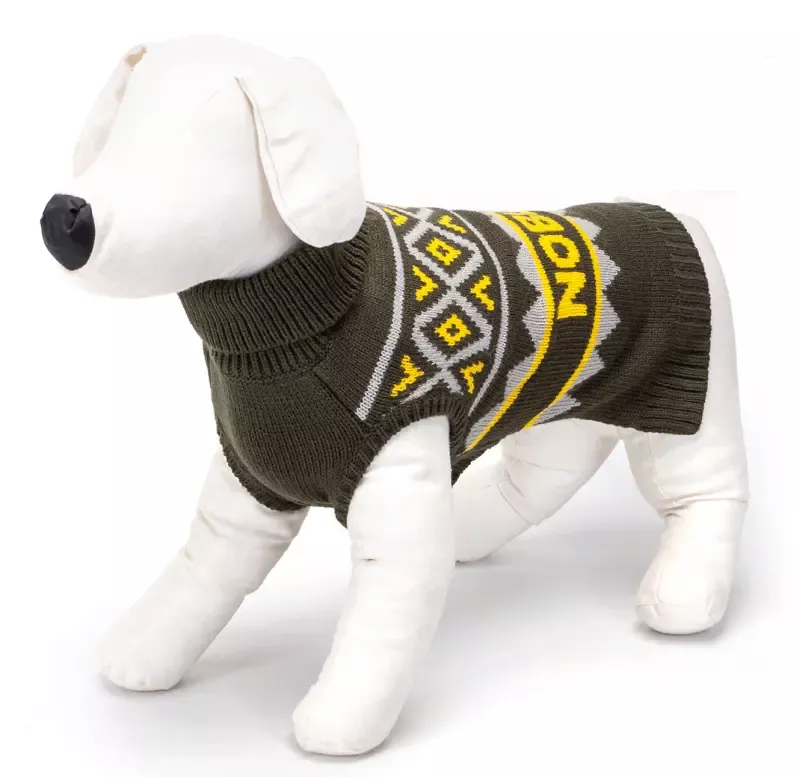 Elegancji, klasyczny cieplutki sweterek z kontrastowym żakardowym kolorowym wzorem, dla psich zmarzluchów. Idealne ubranko na chłodniejsze dni, jest milutkie, rozciągliwe, dzięki czemu nie będzie problemu, aby założyć go na pieska.