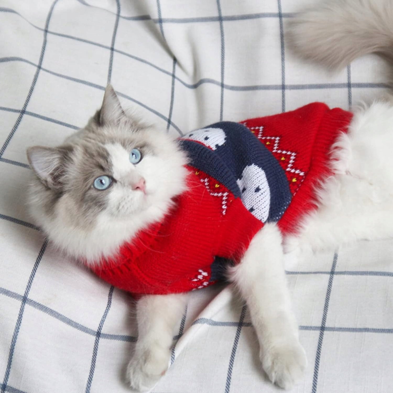 Ciepły świąteczny sweter dla zwierząt domowych jest bardzo łatwy do założenia i startu, a te ubrania psów w zimnej pogodzie są bardzo ciepłe i wygodne.