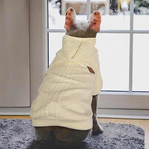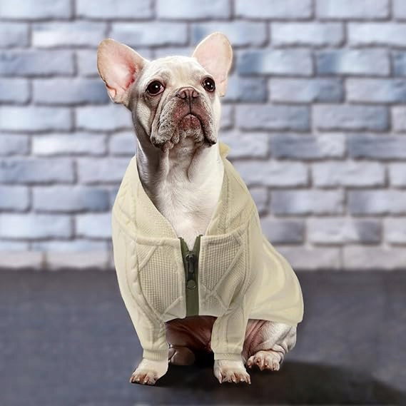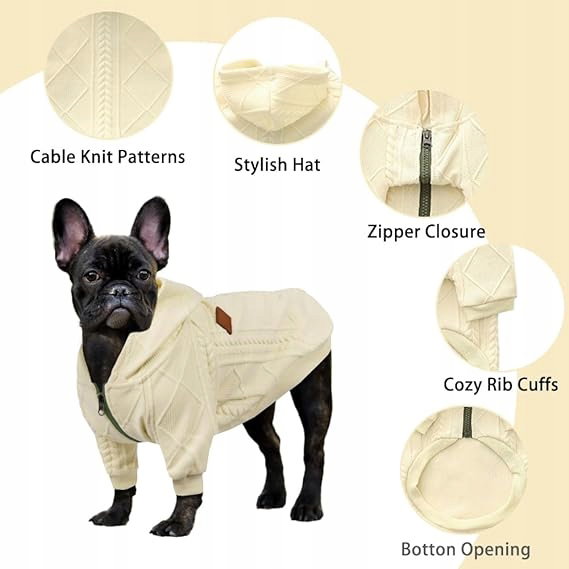 Meioro Sweter z kapturem i zamkiem błyskawicznym dla psa Odzież dla zwierząt Ubrania dla psów i kotów Śliczne ubrania dla zwierząt Ciepły sweter z kapturem Zimowy ciepły szczeniak Buldog francuski Mops (XL, kremowy)