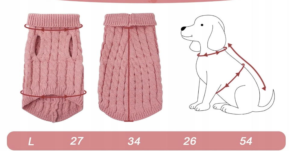 SWETER ZIMOWY DLA PSA I KOTA RÓŻOWY L DZIANINOWY GOLF