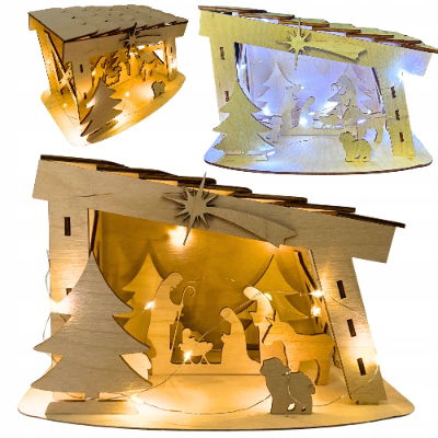 Ta piękna, wykonana z drewna szopka betlejemska idealnie oddaje magię świąt Bożego Narodzenia. Drewno z sklejki drewnianej z którego zostało wykonane, podkreślenie tradycyjnego, rustykalnego charakteru dekoracji, a subtelne podświetlenie LED wprowadza wyjątkowego blasku, nadającego się do użytku domowego.
