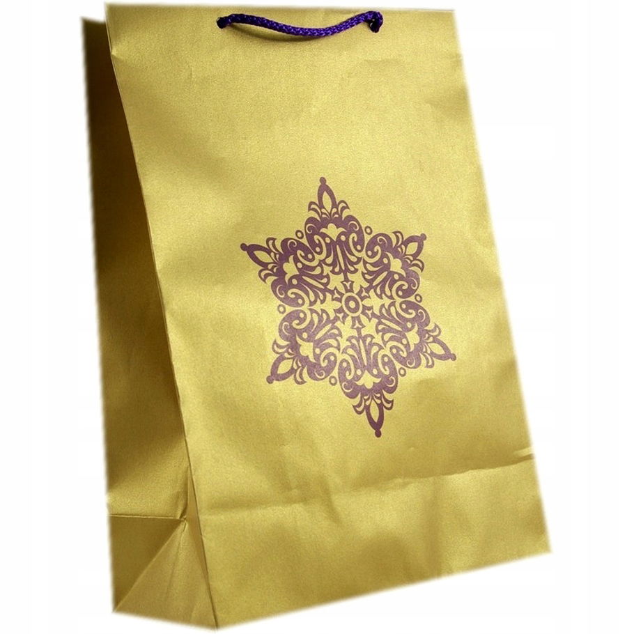 Świąteczna torebka papierowa L w złotym perłowym kolorze o wymiarach 32×23 cm to eleganckie opakowanie na większe prezenty. Ozdobiona złotą gwiazdą, podkreśla świąteczny charakter upominku. Wykonana z wysokiej jakości papieru, zapewnia trwałość i elegancję. Idealna na prezenty bożonarodzeniowe i inne uroczystości. Doskonały wybór dla osób ceniących stylowe pakowanie.