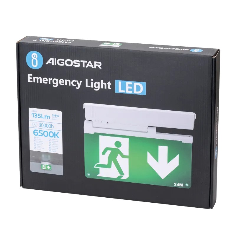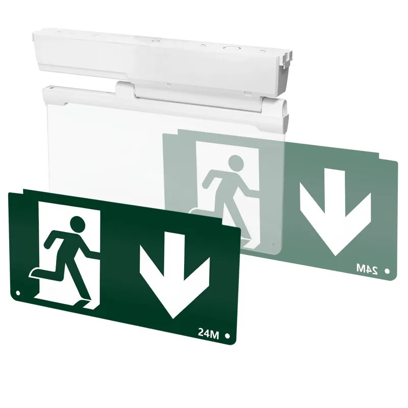 Oświetlenie awaryjne oferuje wszechstronną instalację z możliwością montażu zarówno na ścianie, jak i na suficie. Ułatwia to dostosowanie znaku do konkretnych przestrzeni i zapewnia optymalną widoczność pod każdym kątem.