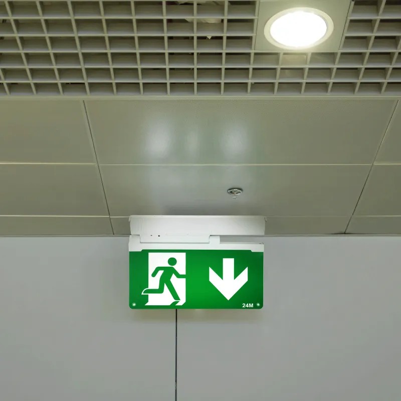 Oświetlenie awaryjne LED do montażu pod sufitem, rozwiązanie w zakresie bezpiecznej i skutecznej sygnalizacji wyjść awaryjnych. Ten znak wyjścia łączy w sobie funkcjonalne oświetlenie awaryjne ze stylowym wyglądem, dzięki czemu można łatwo znaleźć wyjście awaryjne, gdziekolwiek się znajdziesz.