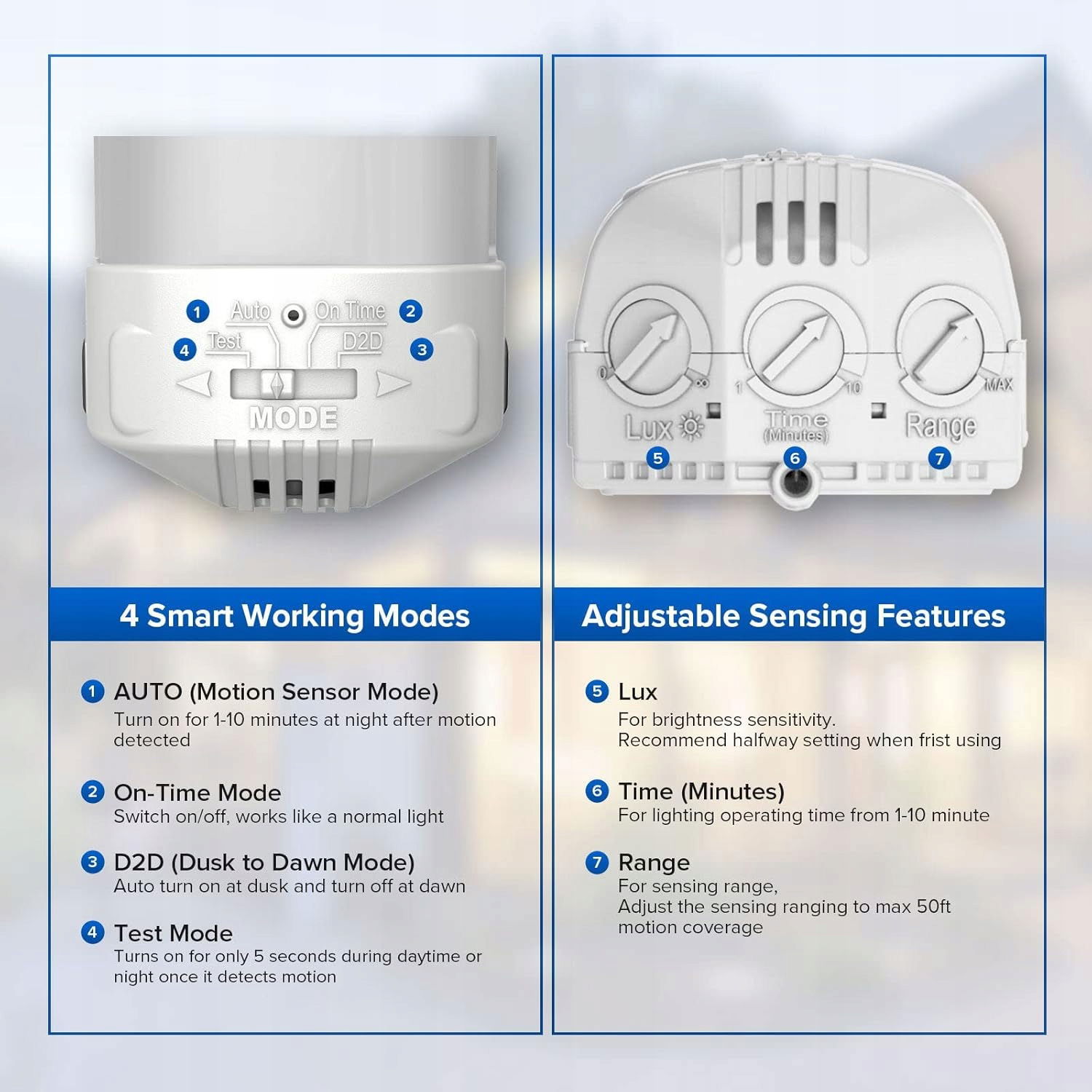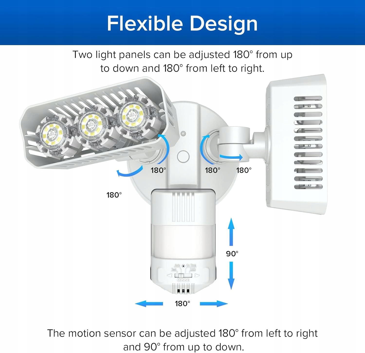 Czujnik ruchu zapewnia automatyczne włączanie i wyłączanie światła, maksymalizując wygodę. Zasięg wykrywania do 150 stóp pozwala na pełną kontrolę nad otoczeniem w nocy.