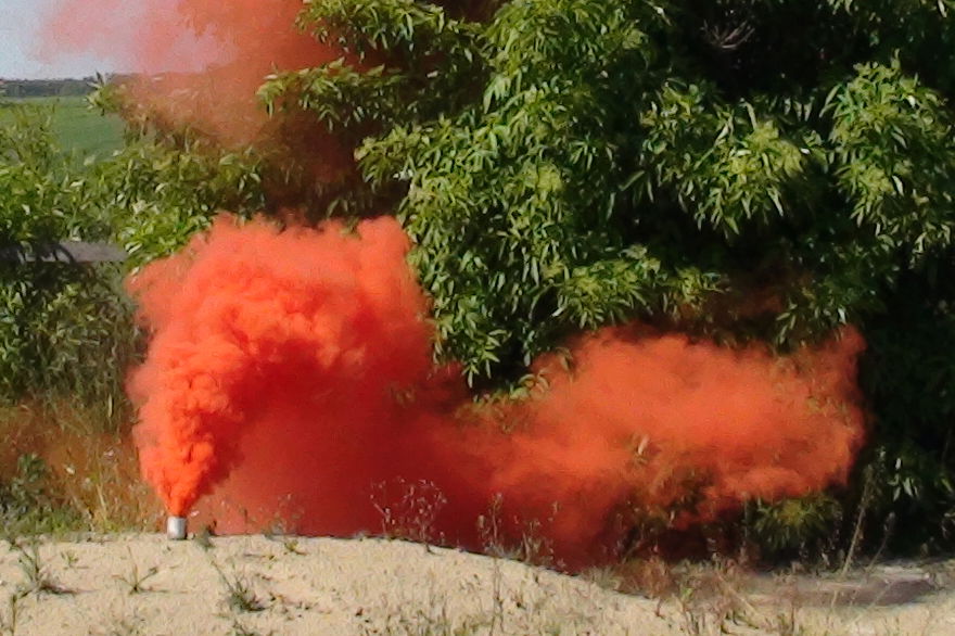 Świeca dymna odpalana za pomocą zawleczki tarciowej.