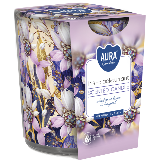 Świeca zapachowa BISPOL Aura sn72s-59 (Irys & Czarna porzeczka) ~22h