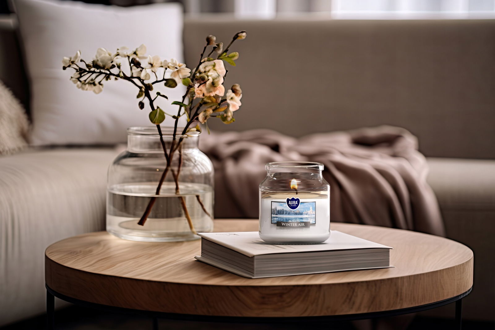Mała świeca zapachowa Zimowe powietrze marki AURA otula czystą, krystaliczną świeżością wodnych i zielonych nut z lekką słodyczą melona. Kwiatowo-bawełniane serce z akcentem kwiatu wiśni tworzy wrażenie miękkości i komfortu. Całość dopełnia subtelna, balsamiczna baza, nadając kompozycji elegancki i kojący charakter.