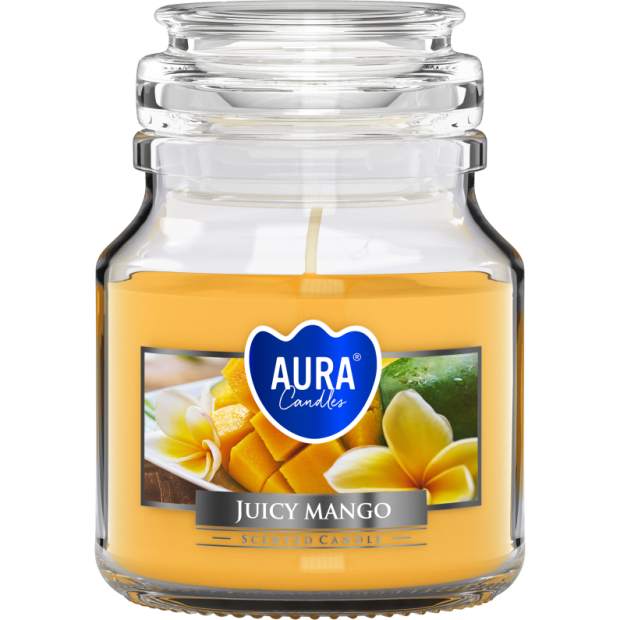 Mała świeca zapachowa Soczyste mango marki AURA to eksplozja tropikalnej świeżości ananasa i dojrzałego mango z delikatnym, zielonym akcentem. Owocowe serce z nutą truskawki nadaje kompozycji słodyczy i lekkości. Całość otula kremowa wanilia, tworząc apetyczny i radosny aromat.