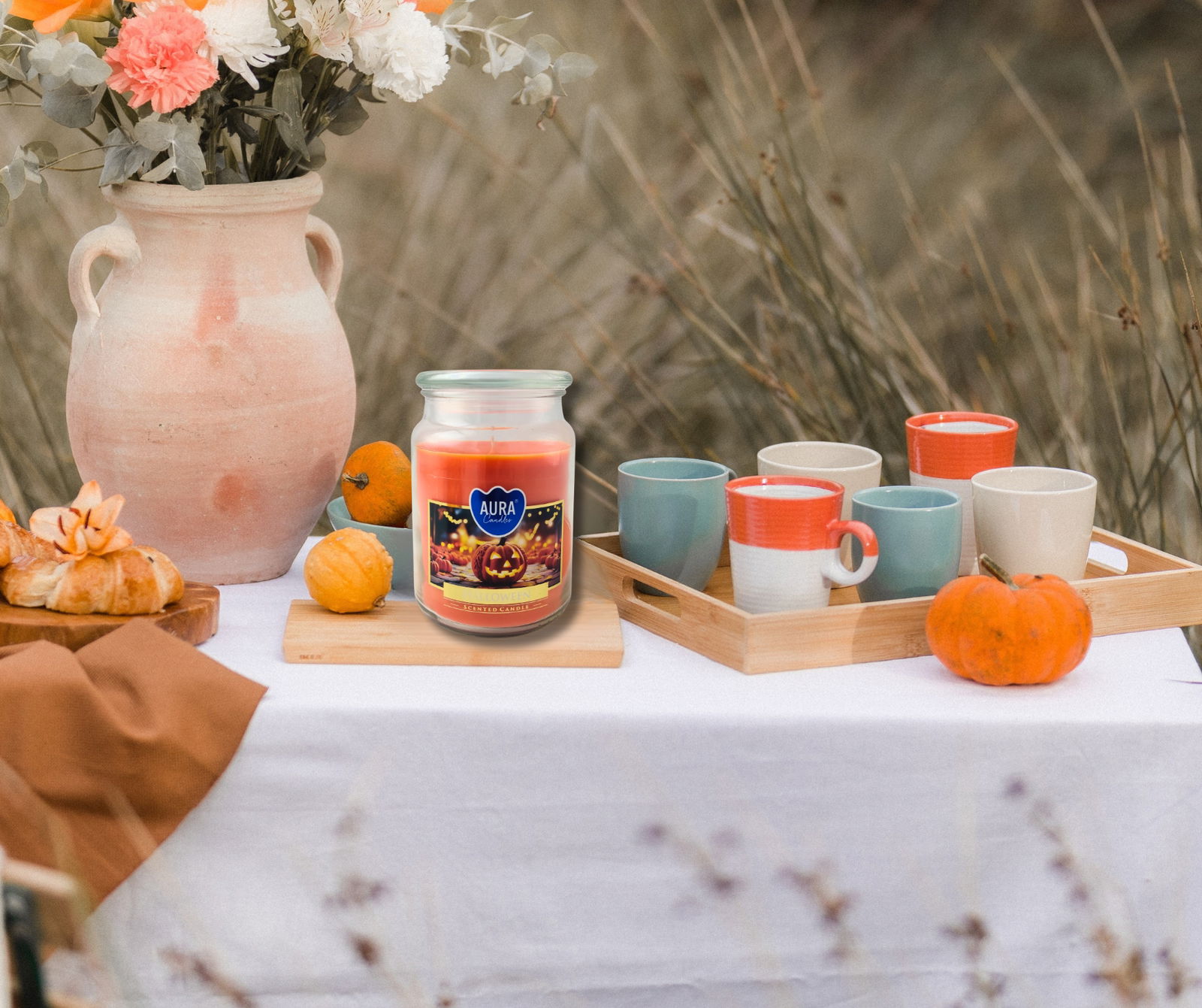 Świeca zapachowa Halloween marki AURA roztacza tajemniczą aurę, otwierając się iskrzącą mieszanką cytrusów, soczystych owoców i lekkiego aldehydowego chłodu. W sercu zapachu pulsują ciepłe nuty egzotycznego drewna, anyżu i kwiatów pomarańczy, tworząc zmysłową, lekko mroczną głębię. Całość otula baza z wanilii, bobu tonka i żywicy, przywodząc na myśl mglisty wieczór pełen czarów i niespodzianek.