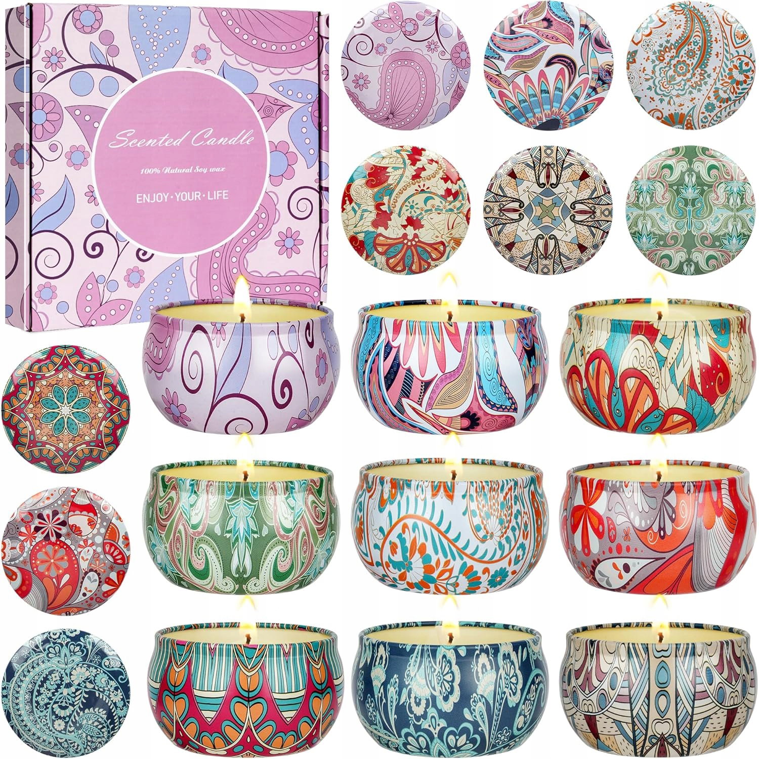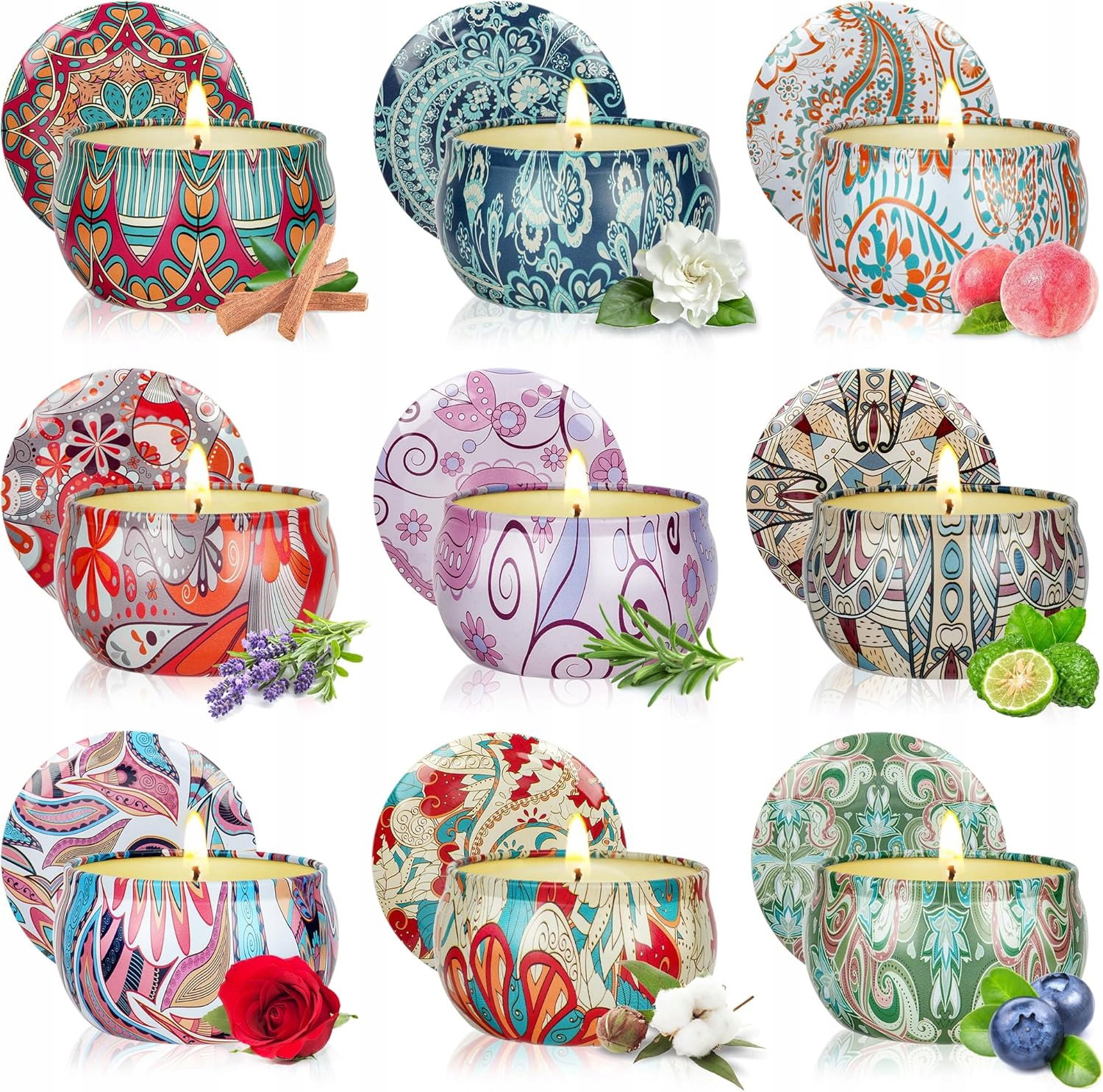 Zestaw świec zapachowych dla kobiet, na prezent, 9 sztuk świec zapachowych z pokrywkami, 180 godzin, 100% wosk sojowy, przenośne podróżne świece blaszane na odprężenie, prezent urodzinowy dla rodziny