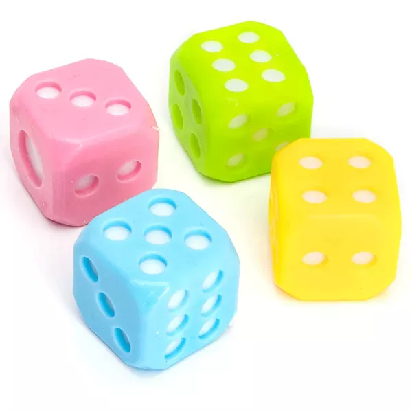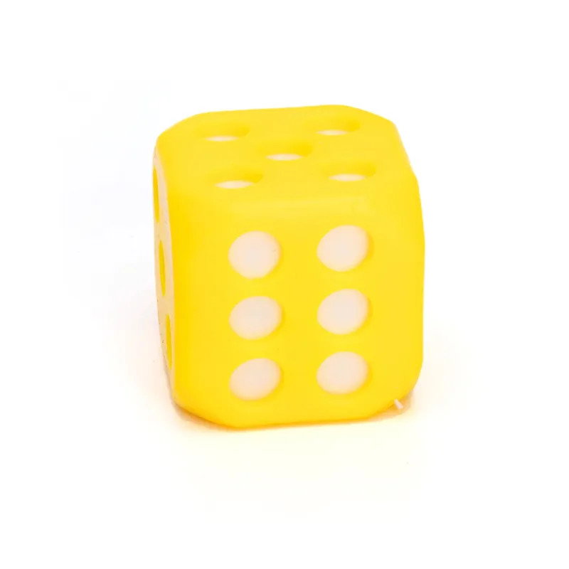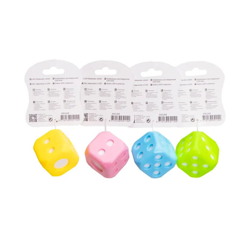 Świecąca kostka LED, używana jako zabawka dla zwierząt lub gadżet imprezowy. Zabawka wykonana jest z miękkiej i wytrzymałej gumy termoplastycznej (TPR), która świeci po rzuceniu lub wstrząśnięciu. Kostka do gry ma wymiary około 4 cm i pomaga w utrzymaniu higieny jamy ustnej u zwierząt, a także ułatwia znalezienie zabawki po zmroku.