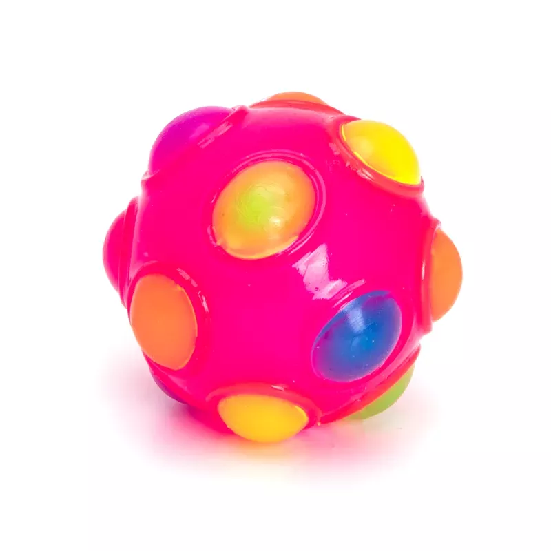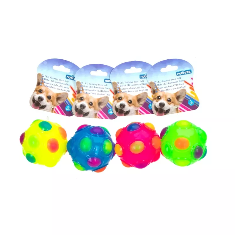Świecąca piłka sensoryczna o średnicy 7.5cm dla psów, często określana jako kula LED disco. Zabawka aktywuje się i świeci po uderzeniu lub potoczeniu, co zachęca zwierzęta do aktywności.