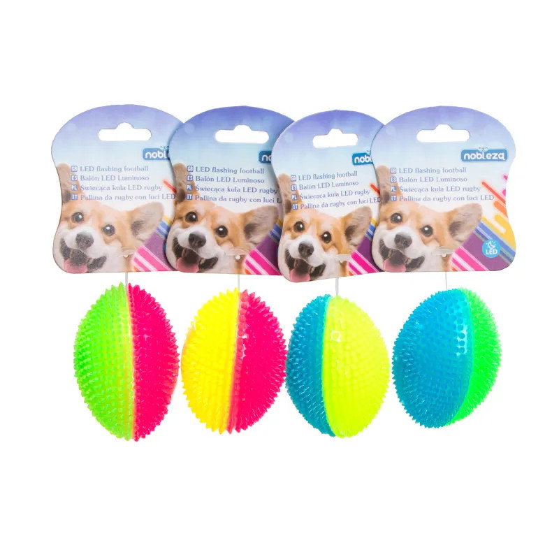 Bezpieczna i bezwonna, świecąca piłka do rugby jest stworzona z myślą o zabawie w każdych warunkach. Niezależnie od tego, czy grasz z psem w ogrodzie, czy podczas spaceru, ta piłka z pewnością dostarczy mu wielu radości. Warto dodać, że kolor piłki wysyłamy losowo, co sprawia, że każda zabawa jest unikalna.