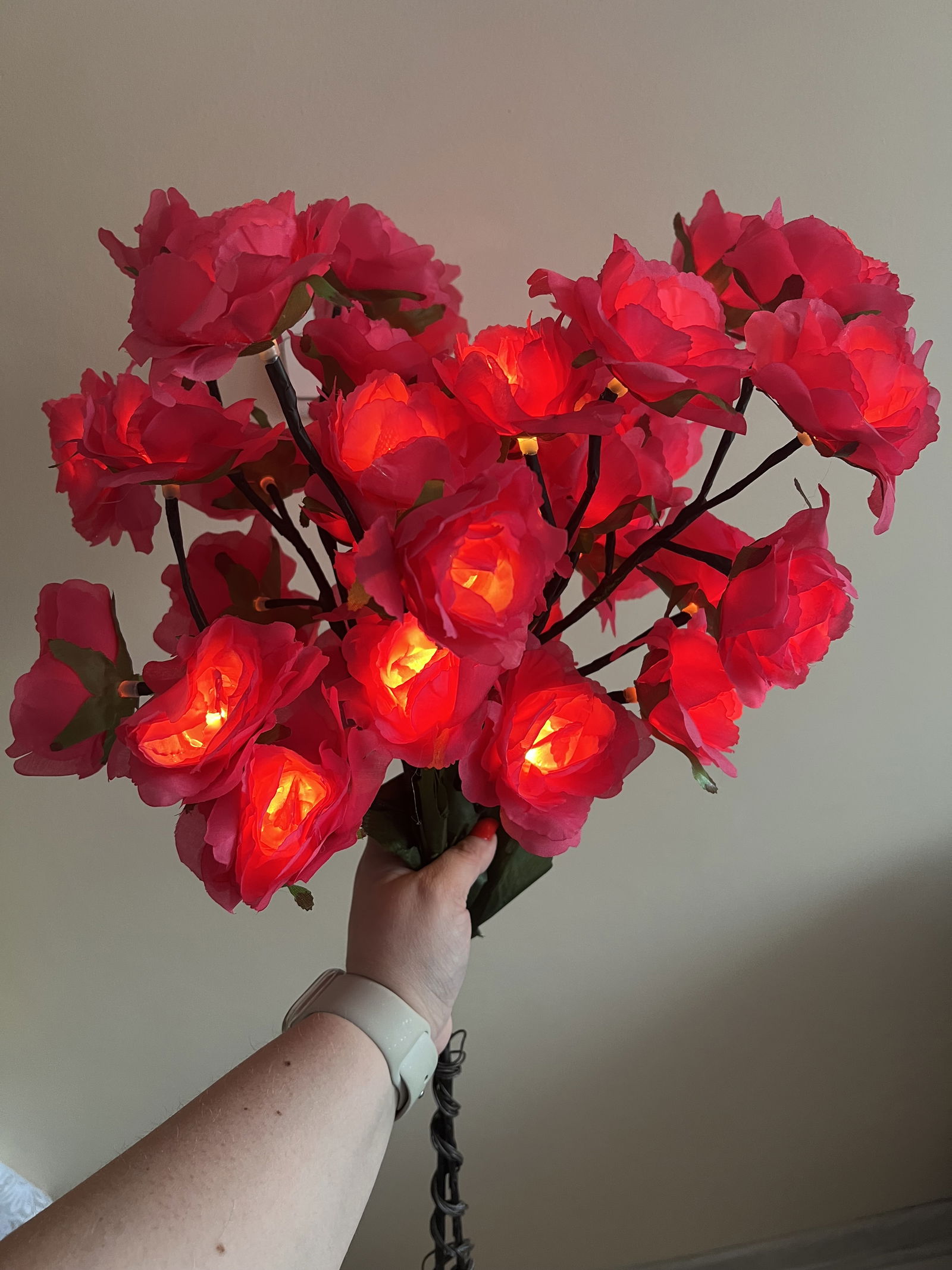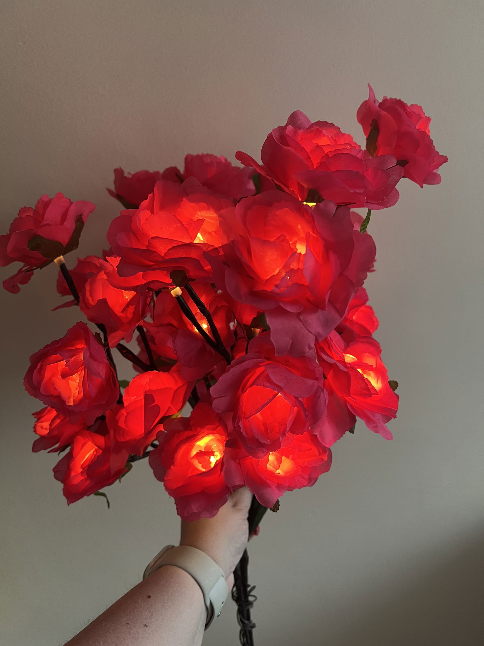 Mam do sprzedania piękny bukiet róż, który świeci w ciemności 🙂. Działa na prąd oczywiście 😇. Super dekoracja zarówno do domu jak i do ogrodu. Cena: 30 zł / szt. Mam 6 takich bukietów. Odbiór osobisty Żywiec lub mogę wystawić olx / Vinted:)
