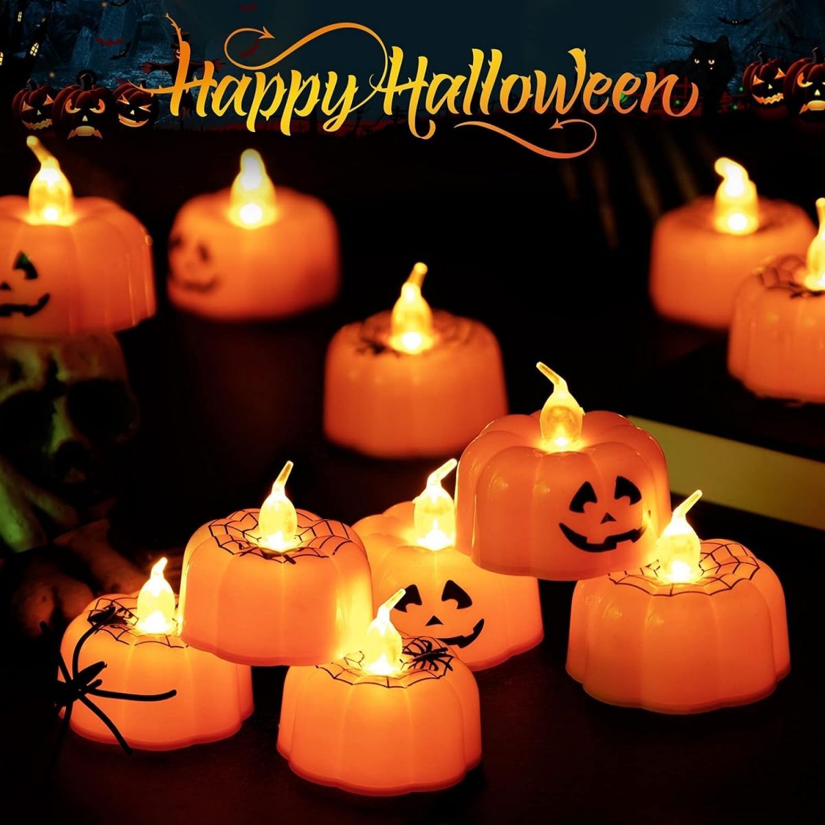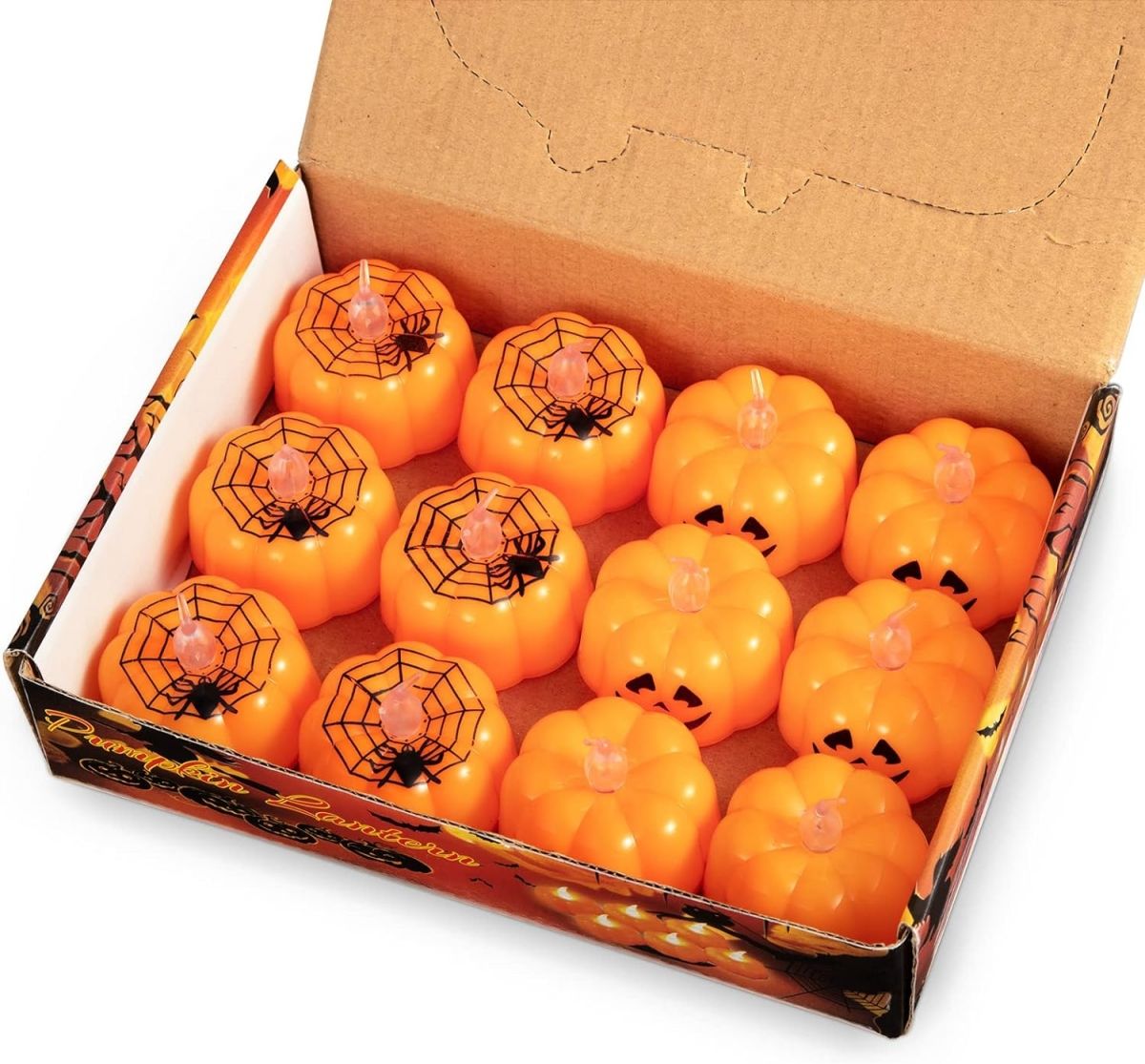 Świece LED w kształcie dyni, 12 sztuk podgrzewaczy na Halloween