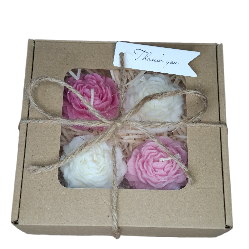 Świece Sojowe Prezent Zestaw 4 Piwonie Dzień Babci Dziadka Walentynki
