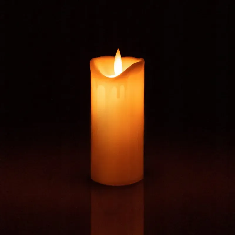 Po włączeniu lampka świeci ciepłym kolorem przypominającym prawdziwy płomień. Świeca została wykonana w sposób aby przypominało ociekający wosk, a do tego posiada imitację ruchomego płomienia.