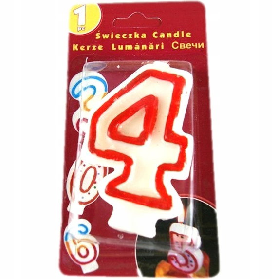 Świeczka urodzinowa cyfra „4” w bordowym kolorze to klasyczny element dekoracyjny na tort urodzinowy. Wykonana z wysokiej jakości wosku, ma wysokość 7,5 cm. Produkt zapakowany w blister, co ułatwia przechowywanie. Idealny wybór na każdą uroczystość.