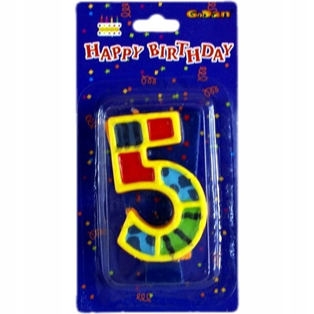 Świeczka urodzinowa cyfra wzorzysta „5” to efektowna dekoracja tortu o wysokości 7,5 cm. Kolorowy wzór dodaje jej wyjątkowego charakteru, podkreślając uroczysty nastrój. Wykonana z wysokiej jakości wosku, pali się równomiernie i stabilnie. Produkt zapakowany w blister, co zabezpiecza go przed uszkodzeniem. Idealny wybór na urodziny i jubileusze.