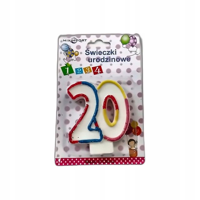 Podkreśl wyjątkowość dwudziestych urodzin dzięki świeczce urodzinowej w kształcie cyfry '20'. Produkt o wysokości 8 cm zachwyca estetycznym wykonaniem i żywymi kolorami. Idealnie komponuje się z tortem urodzinowym, tworząc niezapomniany efekt wizualny. Świeczka zapakowana w blister, gwarantujący wygodę przechowywania i użycia.