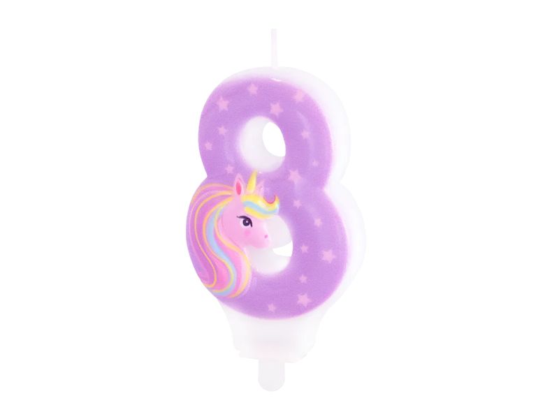 Świeczka urodzinowa z motywem przewodnim JEDNOROŻCA z cyfrą "8". Świeczka jest tak śliczna że zrobi niesamowitą robotę na przygotowanych wypiekach. Wysokość świeczki to ok 8 cm. Unikalność sprawi radość na twarzach Naszych dzieci w 100 procentach.